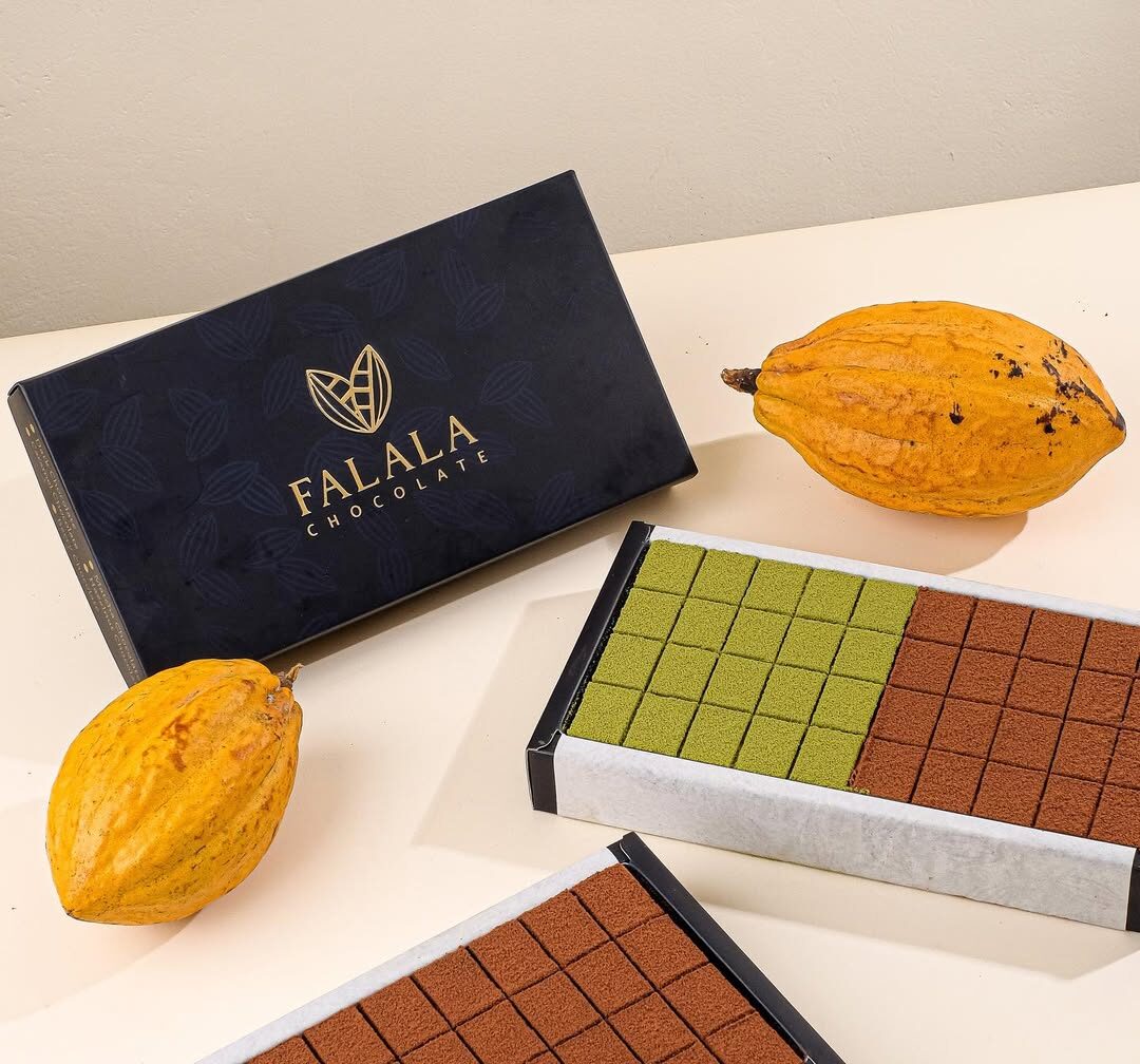 Falala Chocolate terkenal dengan produk coklat yang memiliki tekstur lumer di mulut. Dark Chocolate dan matcha adalah beberapa varian coklat favorit di Falala Chocolate. Anda juga bisa mencoba varian rasa lain yang tidak kalah lezat.
